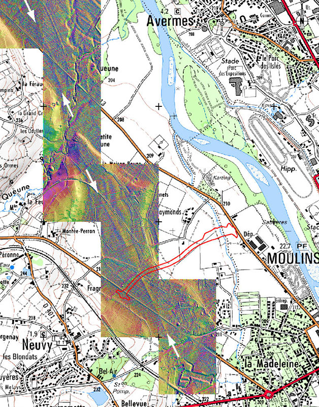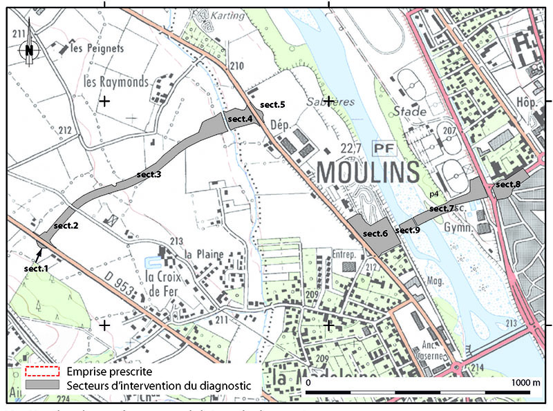 Entre le 23 juillet et le 27 août 2019, une équipe d’archéologues a mené un diagnostic préalable à la construction du nouveau pont sur l’Allier, à Moulins, ainsi qu’à l’aménagement du barreau routier reliant la RD 13 et la RD 953, sur les communes de Moulins et de Neuvy.