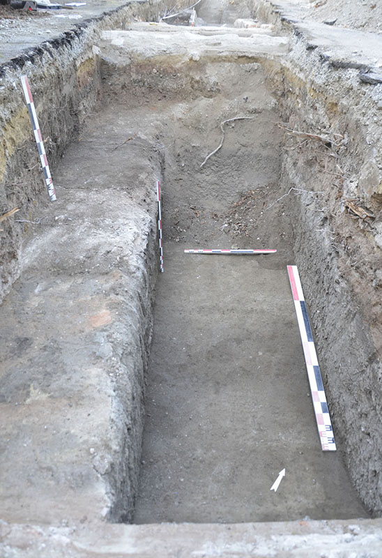 Sous le parking actuel, ont également été mis au jour plusieurs fossés larges, qui révèlent un ancien découpage du terrain en bandes orientées nord-sud.