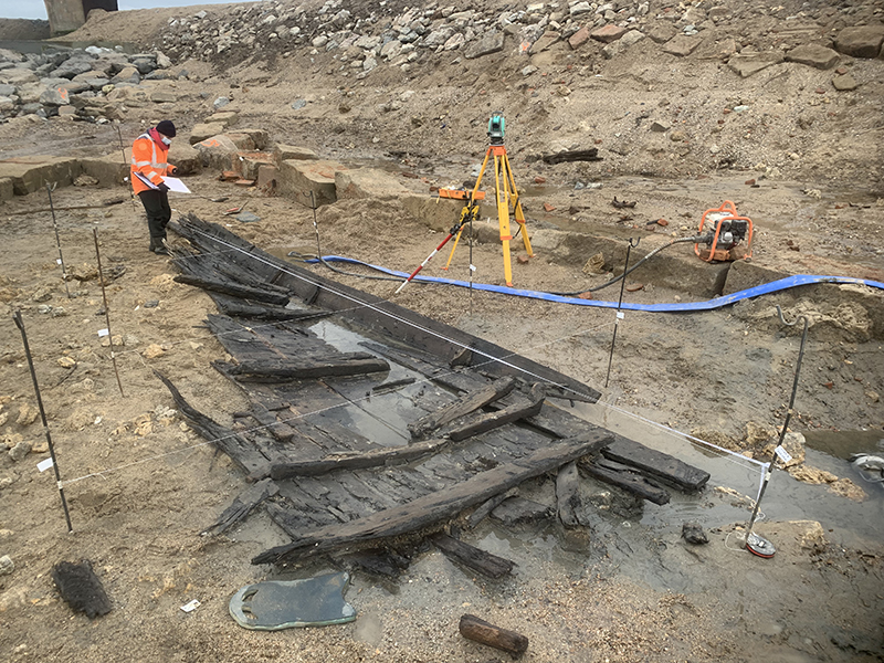 Sous l’effondrement du pont, l’épave d’une embarcation à fond plat a été découverte, caractéristique de la navigation en rivière.